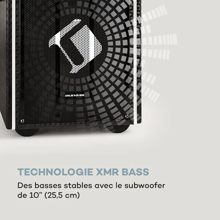 - XMR Bass Technology : basses stables avec le subwoofer de 10″ (25,5 cm)