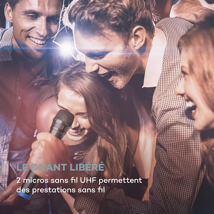 - Puissant : système de sono mobile pour les évènements karaoké et les animations, avec 300 W max.
