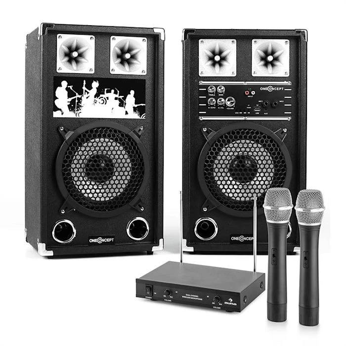 Le set PA Karaoké 8″ fait preuve de véritables qualités pour le divertissement et offre la plateforme pour vous faire découvrir et développer votre talent. Le set d’enceintes oneConcept BSX-8A comprend des composants passifs et actifs, produit un son riche, offre de nombreuses possibilités de connexions et une conception mobile avec une section karaoké particulièrement fournie. Avec ses 90 Watt max. de puissance, des aigus linéaires et les puissants subwoofers de 20cm (8″), le système d’enceintes Master-Slave oneConcept BSX-8A produit un son dynamique avec des aigus clairs et des basses puissantes. La conception Bassreflex permet de les souligner encore plus.