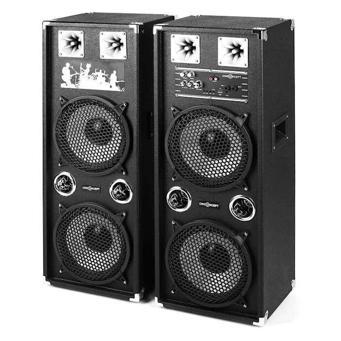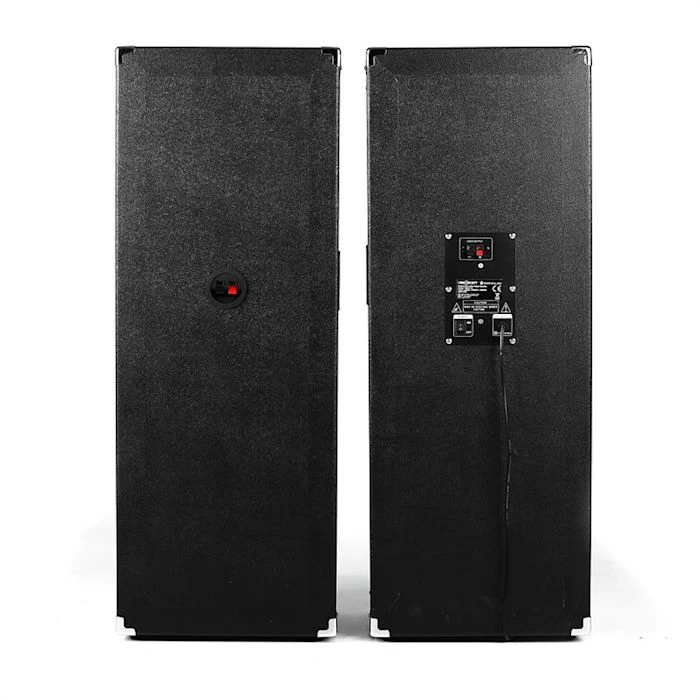 - Paire de haut-parleurs noirs à 2 voies avec woofer de 2x25cm (10″) et 80 watts RMS de puissance