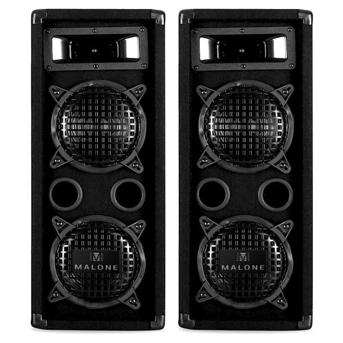 Fat beats : l’ensemble Hifi 3 éléments composé de l’amplificateur numérique Fenton FPL500 de classe D et de deux enceintes de sono 3 voies Malone PW-65X22 peut être utilisé à la maison comme dans un cadre semi-professionnel ou professionnel.