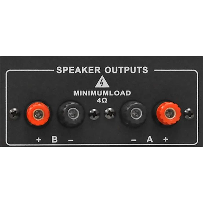 - Connexions: 1 x entrée jack 3,5 mm (située à l’avant), 2 x sortie stéréo bornes à vis, 3 x entrée stéréo RCA