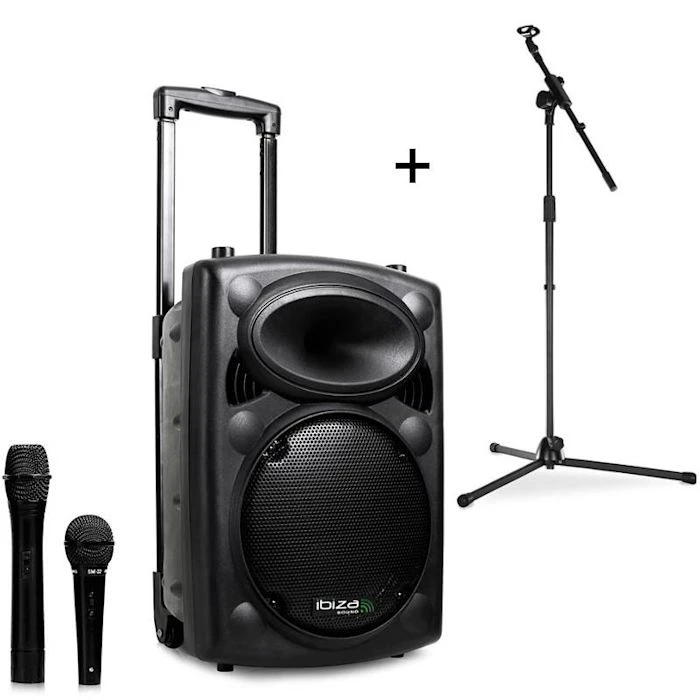 - Chaine PA mobile active avec Subwoofer de 20 cm (8 « ), ampli de 100W et enceintes de 200W RMS (équivalent à 400W max.)