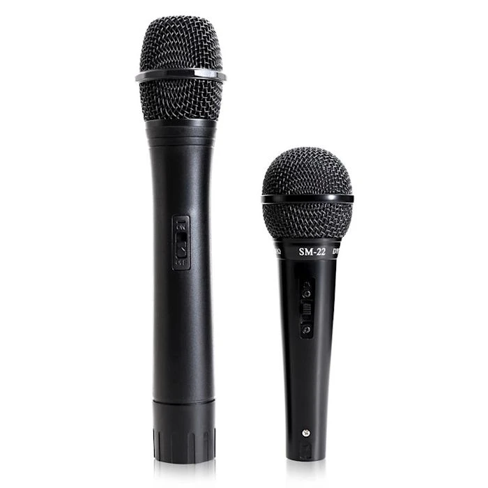 - Livrée avec 2 micros (1 x sans fil, 1 x filaire)