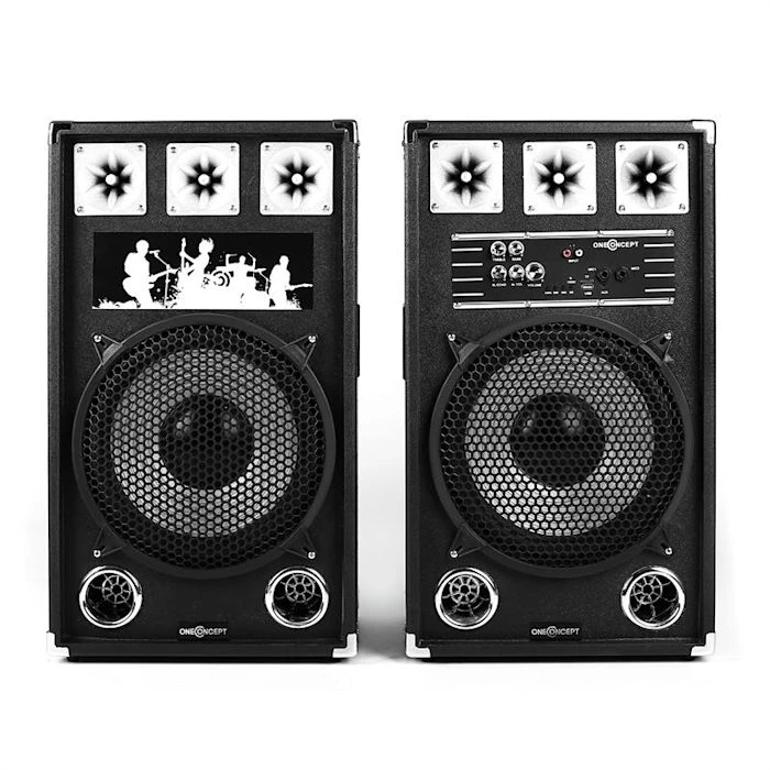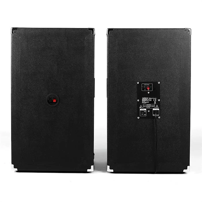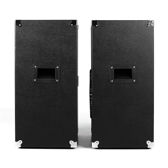 - Paire de haut-parleurs noirs à 2 voies avec woofer de 30cm (12″) et 80 watts RMS de puissance
