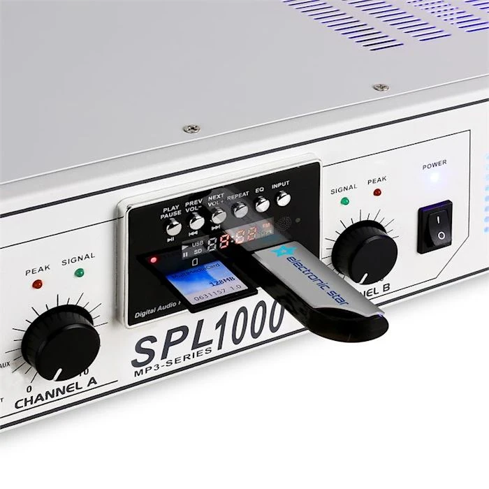 Le Skytec SPL-1000-MP3 est un ampli PA et HiFi souverain, qui rompt d’avec les conventions en matière d’équipement PA et HiFi comme en témoigne son Design très original. Finis la monotonie et les camaïeux gris-noir avec le SPL-1000-MP3 qui opte résolument pour des tons vis et chaleureux, encaissés dans un châssis blanc du plus bel effet.
