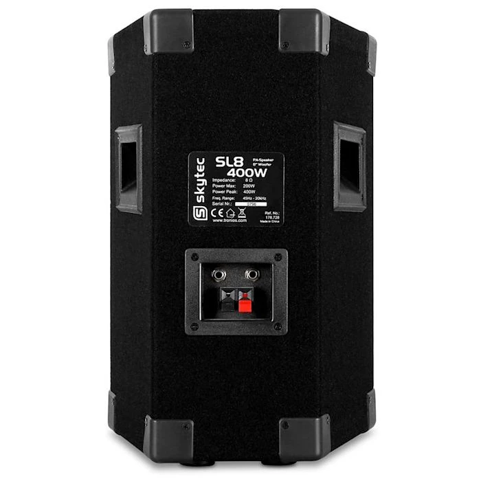 La paire d’enceintes passives avec trépieds Skytec SL8 fera bonne figure lors des petites et moyennes soirées de toutes sortes.