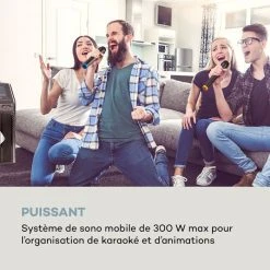 - Système audio PA mobile avec 300W max. et deux trépieds pliables