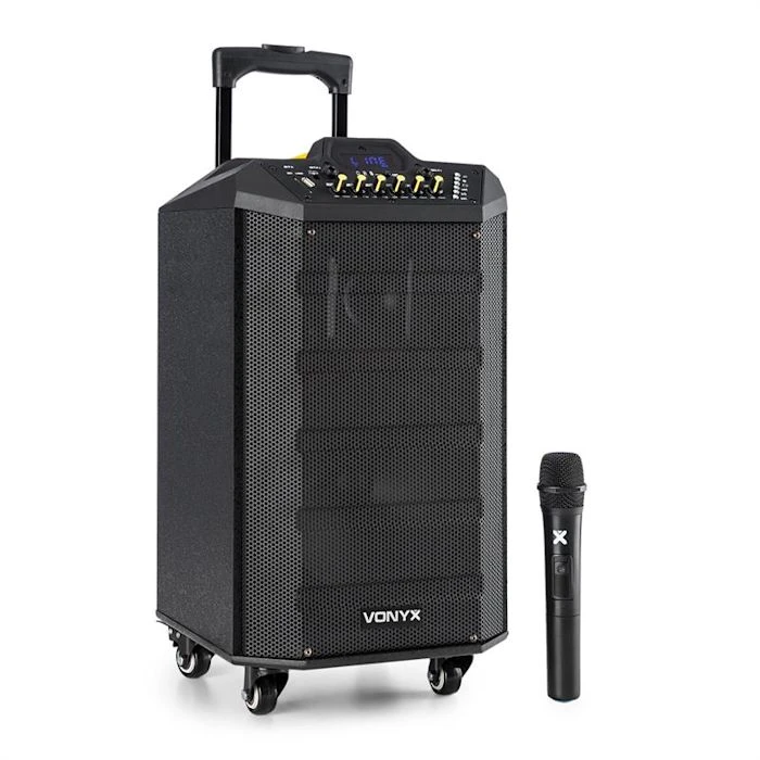 La chaîne PA Vonyx VPS10 apporte la musique là où vous en avez besoin. La batterie intégré et la possibilité de la transporter facilement en font une chaîne hifi multifonction portable.